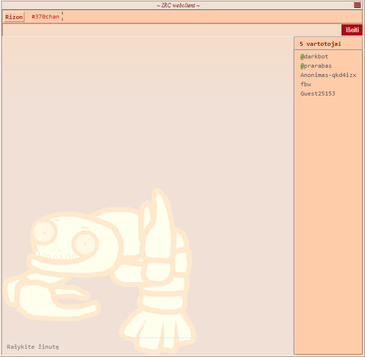 370chan - paprastas vaizdais paremtas forumas, kuriame bet kas gali pareikšti savo nuomonę ar pasidalinti nuotraukomis anonimiškai. Skirtingos lentos skirtos skirtingom temom.